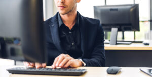 Man at a computer.